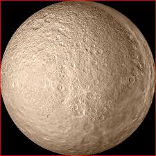 Astronomers have counted 62 moons orbiting Saturn. At 1500km wide, Rhea is the second largest and is thought to be made almost entirely of ice.